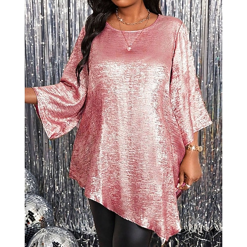 Per donna Blusa Tinta unica Vintage Elegante Casual Manica Lunga Girocollo Top Regolari Quotidiano Uscire Weekend Patchwork Asimmetrico Rosa Blu Reale Fucsia Oro Azzurro Primavera Autunno