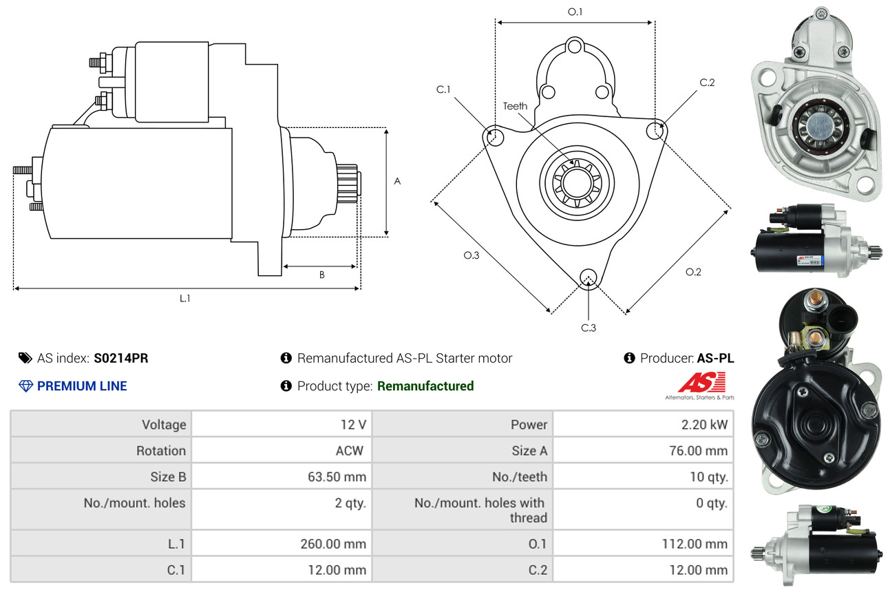 AS-PL Starter S0214PR 12V für VW 2M911023QX 02M911023QX 02M911023Q