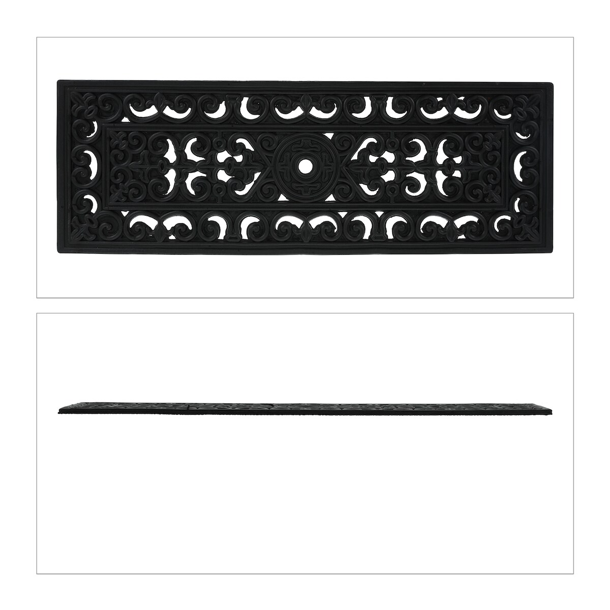 Relaxdays Stufenmatte Gummi, rechteckig, Treppenauflage innen & außen, 75 x 25 cm, Ornamente, Anti-Rutsch-Matte, schwarz