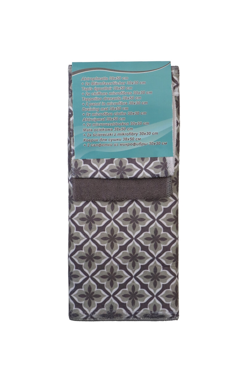 Mikrofaser Abtropfmatte 38 x 50 mm mit 2 Mikrofasertücher 30 x 30 cm Taupe