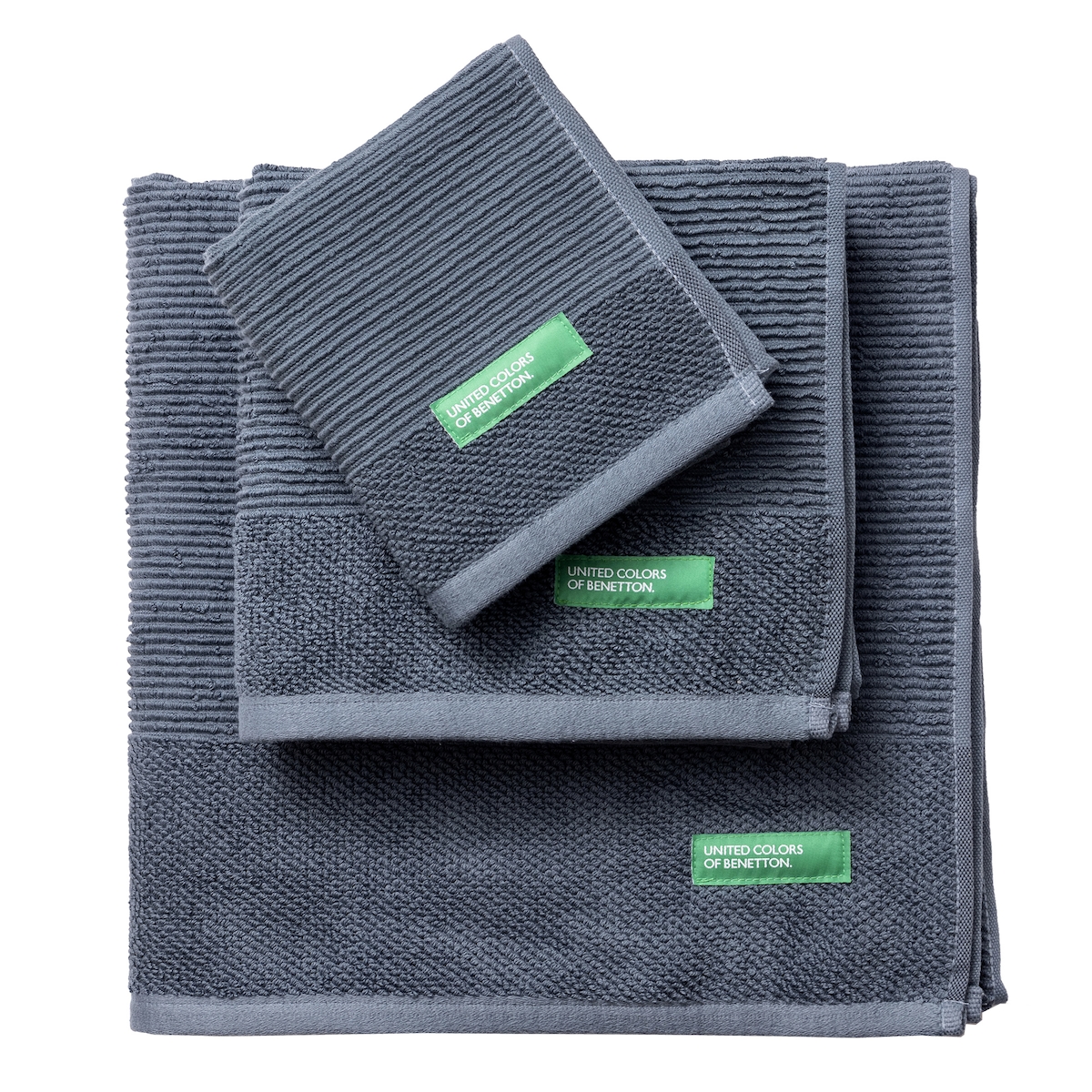 Benetton – Set mit 3 Badetüchern (30 x 50 + 50 x 90 + 70 x 140 cm), 450 g/m², 100 % Baumwolle, Dunkelgrau