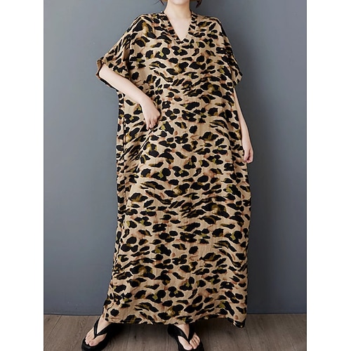 Abito Maxi Donna Kaftano Manica 3/4 Girocollo Abito Casual Abito A Line Boho Vestibilità Regolare Grafiche Foglie Giallo Rosa Blu Viola Primavera Autunno