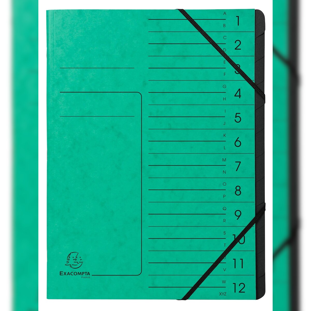 Exacompta 541203E 10x Ordnungsmappe mit Gummizug, innen schwarz, 12 Fächer - A4 - Grün