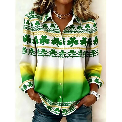 San Patrizio Festa di San Patrizio Per donna Camicia Blusa Bottoni Stampato Grafico Trifoglio Vintage Elegante Casual Manica Lunga Colletto a Camicia Top lunghi Quotidiano Ferie Blu Giallo Verde