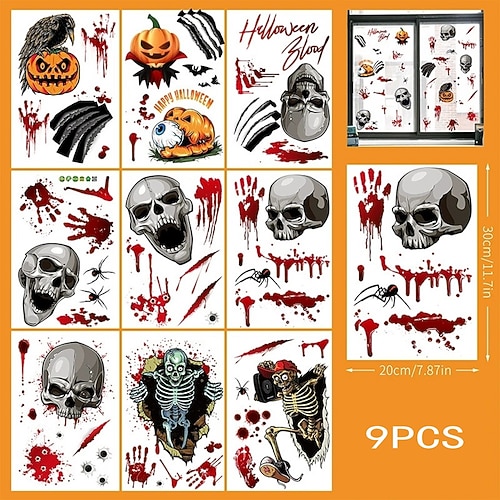 Set di 9 fogli di adesivi per finestre di Halloween: adesivi statici riutilizzabili con zucche, fantasmi, pipistrelli progetti di case infestate per decorazioni in vetro per feste natalizie