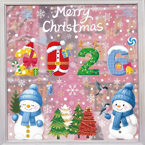 5 fogli adesivi murali per finestre natalizie 2026, decorazioni, bastoncini di zucchero colorati e creativi campane, buon Natale, elettricità statica, casa delle vacanze arredamento del negozio