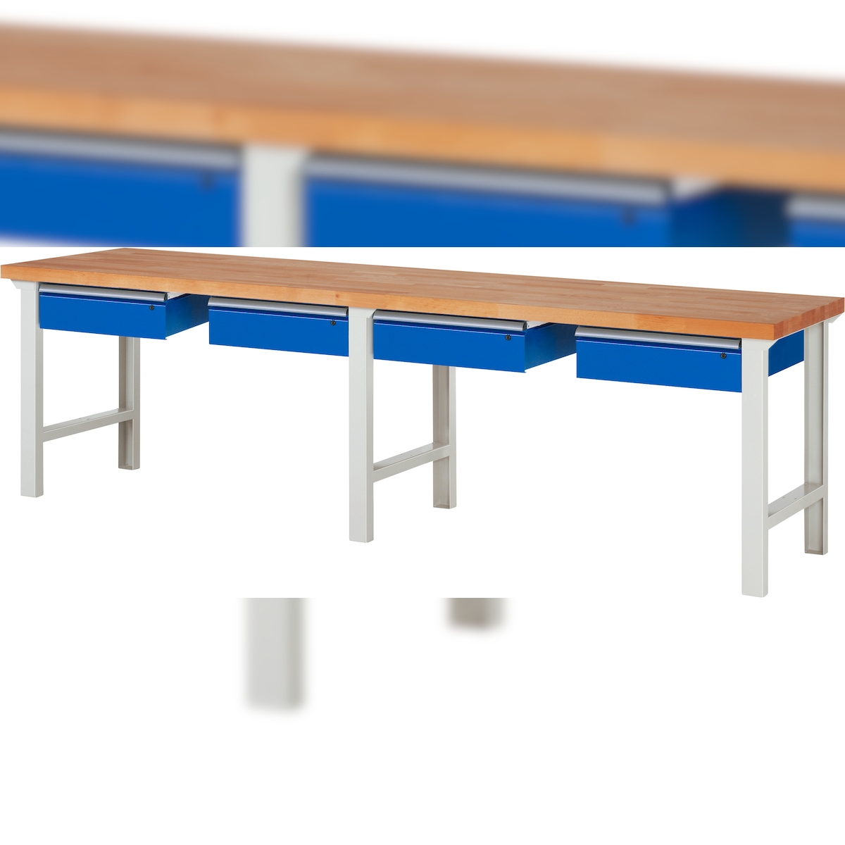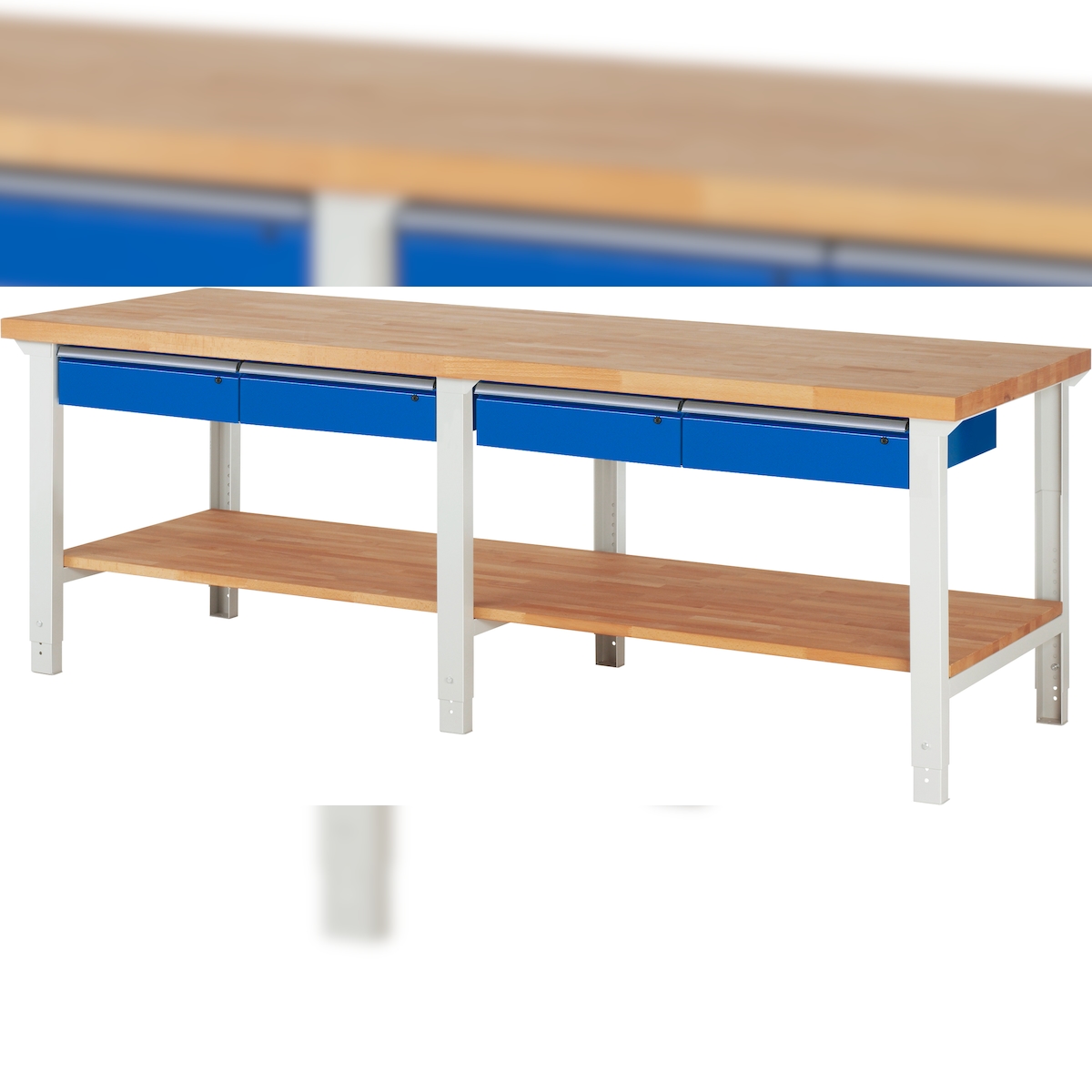 PROREGAL Werkbank Serie 7000 - Modell 7002 | HxBxT 79-114x250x90cm | 4x Schublade + Ablageboden | Schubladenmaße 4x150mm