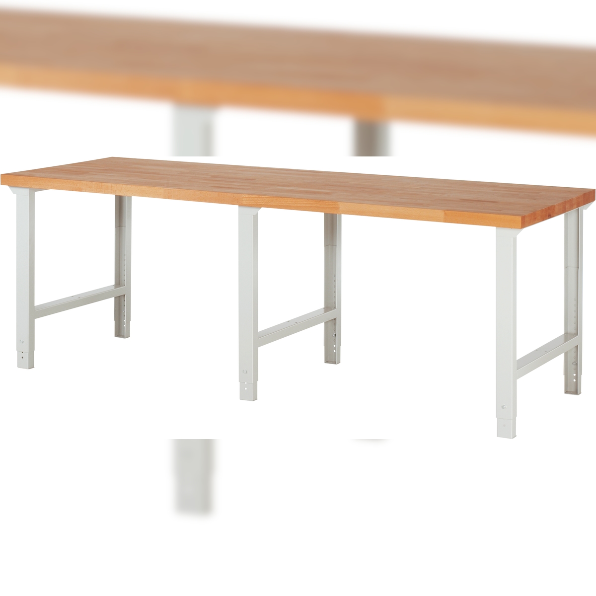 PROREGAL Werkbank Serie 7000 - Modell 7000 | HxBxT 79-114x250x90cm | Lichtgrau | Arbeitstisch Werktisch