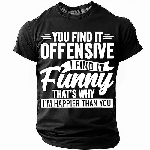 Maglietta grafica divertente da uomo - 'Tu la trovi offensiva io la trovo divertente ecco perché sono più felice di te' a maniche corte