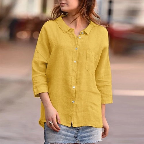 Per donna Camicie di cotone e lino Blusa Semplice Moderno Manica Lunga Colletto a Camicia Top Regolari Quotidiano Ferie Uscire Bottoni Asimmetrico Giallo Blu marino Verde Estate