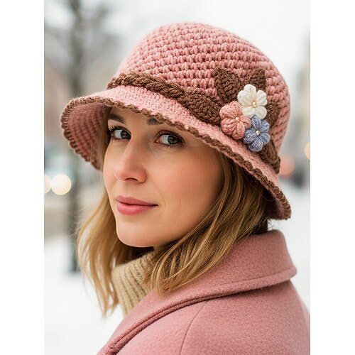 berretto da donna in lana lavorata a maglia – morbido materiale di lana, vari colori, decorazioni floreali 3D, fodera in pile per il calore, perfetto per Natale e attività invernali all'aperto