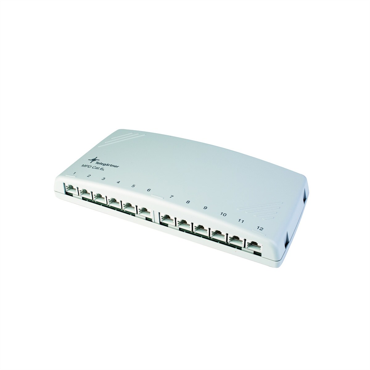 TELEGÄRTNER Mini-Verteiler MPD12-HS K, geschirmt, Cat.6A (tiefgest. n. ISO/IEC) alpinweiß