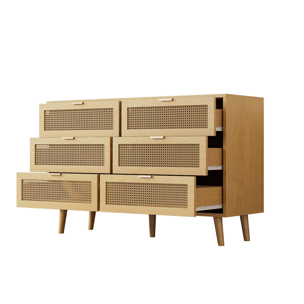 OKWISH Kommode 120x40x76 cm mit 6 Schubladen Eiche Schubladenschrank Schlafzimmer Büro Retro Design Rattanoptik
