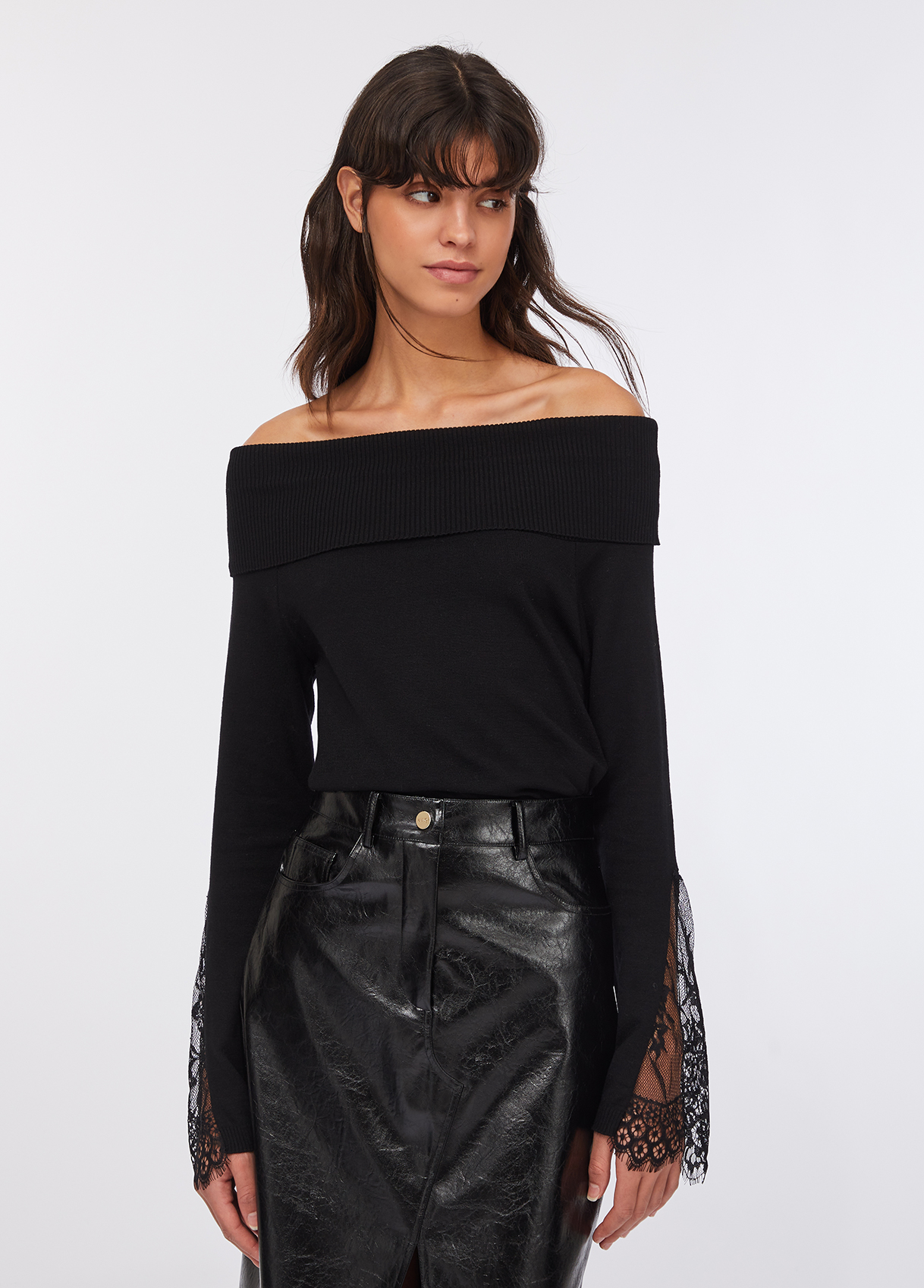 Liu Jo Maglia Bardot Con Pizzo, Nero, L