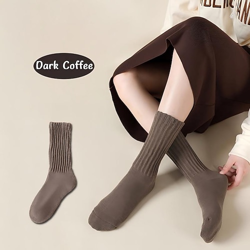 calzini lunghi da donna, morbidi, bianchi, imbottiti, arricciati, spessi, lunghi, in maglia, da strada, alla moda, autunnali, invernali, casual, sportivi, comodi e caldi, per le donne