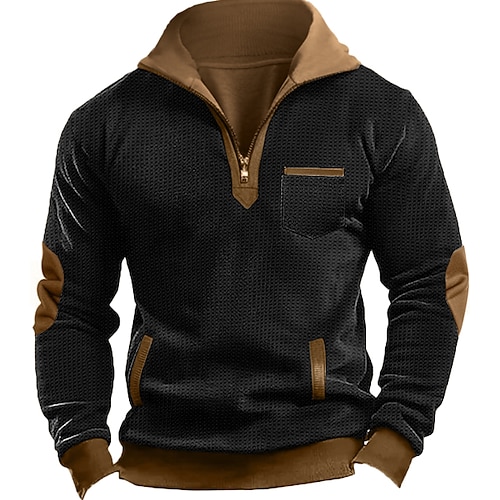 Per uomo Felpa a nido d'ape Felpe con cappuccio a nido d'ape Felpa con zip Maglione Nero Blu marino Colletto Mao Liscio Tasche Ufficio Sportivo Informale Attivo Vintage Fantastico Primavera Autunno