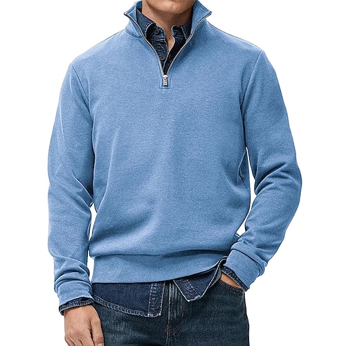Per uomo Maglia Felpa con cappuccio Maglione Felpa con zip corta Blu Blu denim Giallo Rosa Blu marino Colletto Mao Semplice Con zip Casuale Quotidiano Sport Outdoor Streetwear Cool Abbigliamento