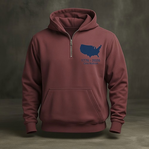 Per uomo Felpa con cappuccio Maglione Felpa con cappuccio e zip corta Blu Nero Vino Blu marino Cammello Con Cappuccio Bandiera Americana Tasca Stampato Quotidiano Sport Outdoor Ferie Streetwear