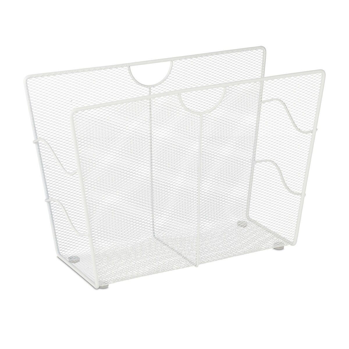 Relaxdays Zeitungsständer Metall, Zeitschriftenständer freistehend, Mesh, Wohnzimmer und WC, HBT: 27 x 39 x 17 cm, weiß