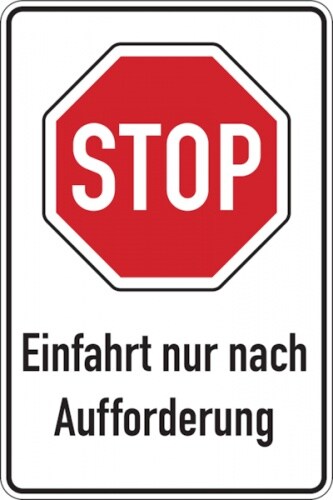 Parkplatzschild, STOP Einfahrt nur nach Aufforderung, 900x600mm, Alu glatt - 600x900x2 mm Aluminium 2 mm