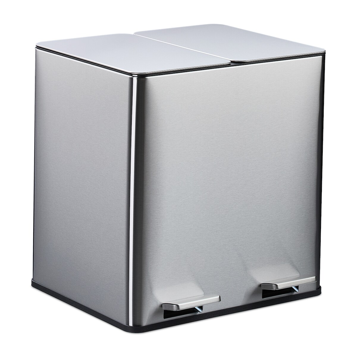 Relaxdays Mülleimer 2 x 15 Liter, Küchenmülleimer mit Geruchsfilter, Biomüll, Absenkautomatik und Trittpedal, silber