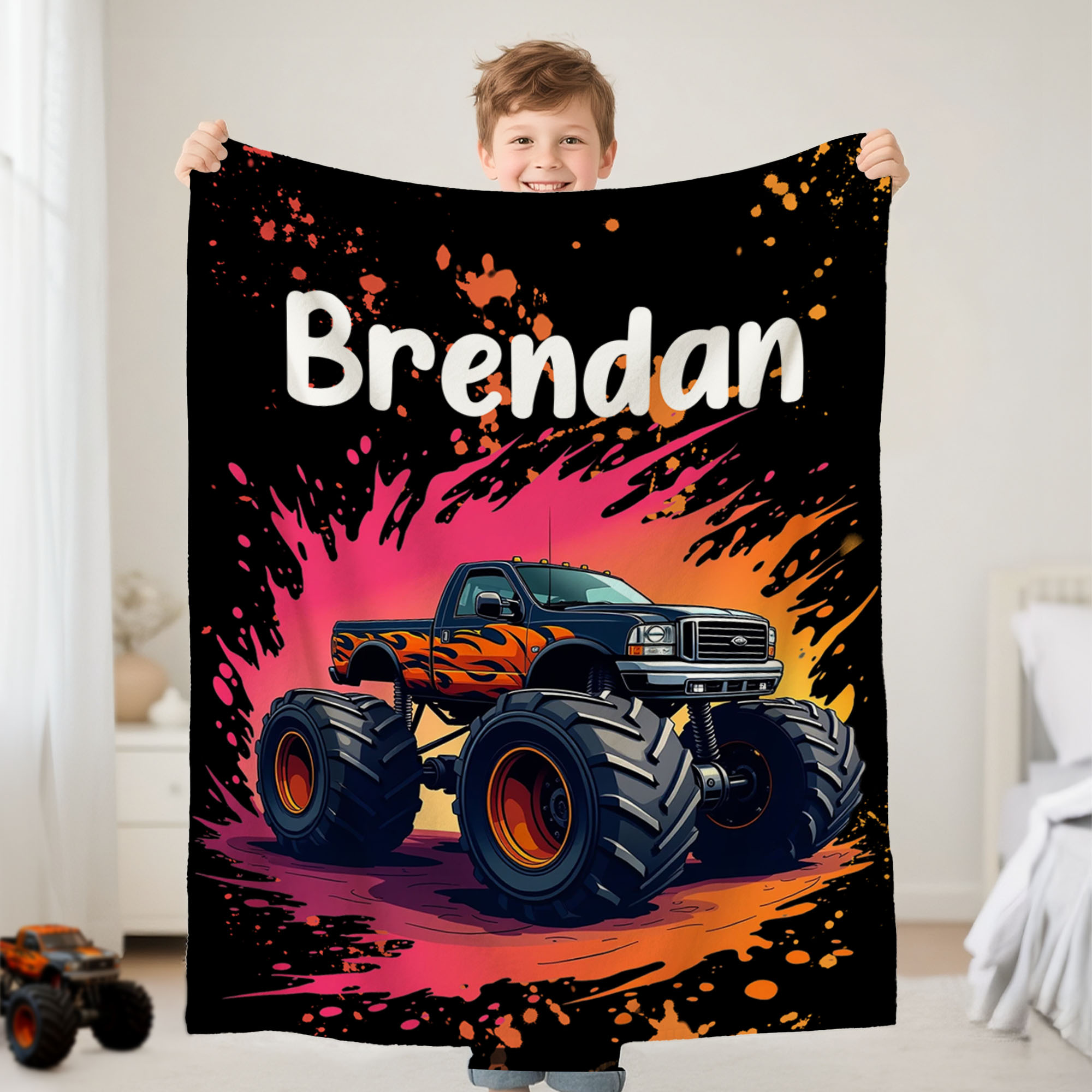 Manta blanda personalizada de camión todoterreno con nombre Decoración del hogar Regalo de cumpleaños para niños Amantes de los camiones