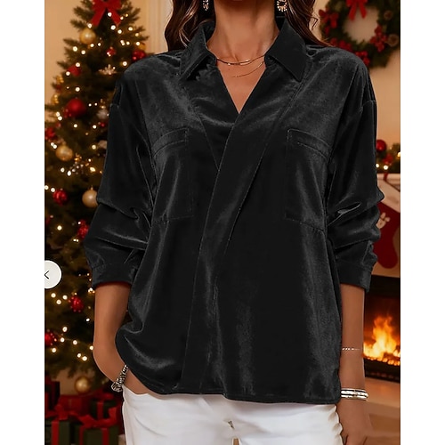 Per donna Velluto Blusa Top Eleganti Semplice Elegante Vintage Signore Manica Lunga Colletto a Camicia Top lunghi Quotidiano Lavoro Ferie Arricciato Patchwork Bottoni Marrone rossastro Viola chiaro
