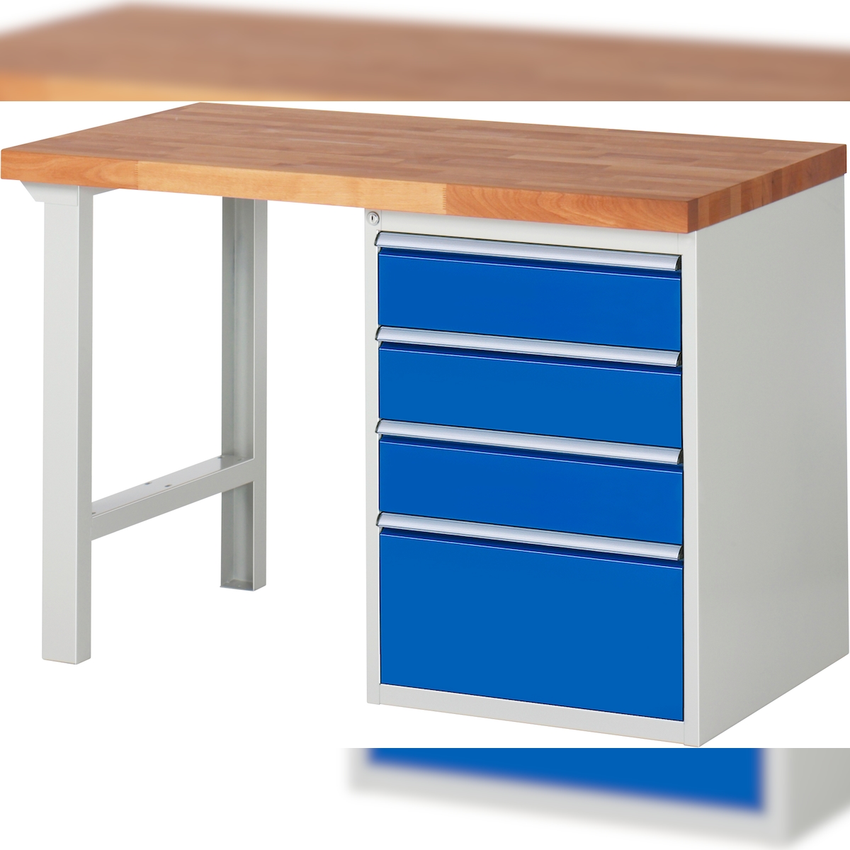 PROREGAL Werkbank Serie 7000 - Modell 7510 | HxBxT 84x125x70cm | 4x Schublade | Schubladenmaße 3x150 + 1x270mm | Lichtgrau | Arbeitstisch Werktisch