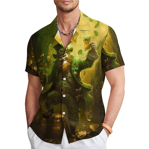 giorno di san patrizio quadrifoglio artistico astratto camicia da uomo abbigliamento quotidiano per uscire il fine settimana estate couverture serale maniche corte giallo, verde scuro, marrone s, m,