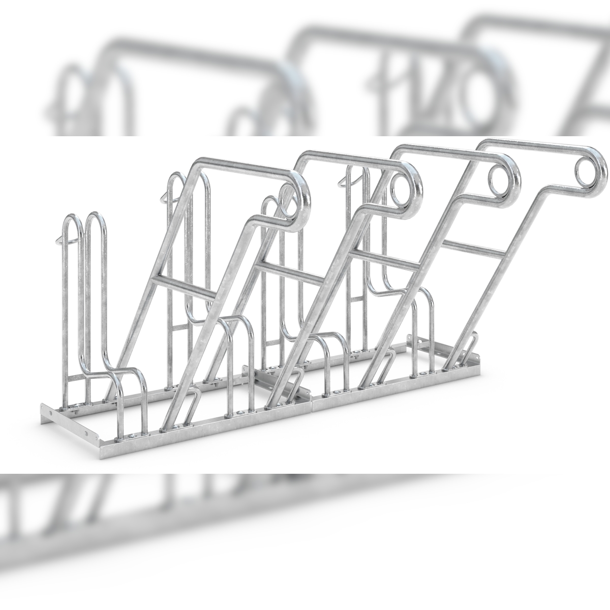 Anlehnparker 4604 | Fahrradständer für einseitiges Parken von 4 Fahrrädern | Freiaufstellung | Abwechselnde Hoch-/Tiefeinstellung | erweiterbar