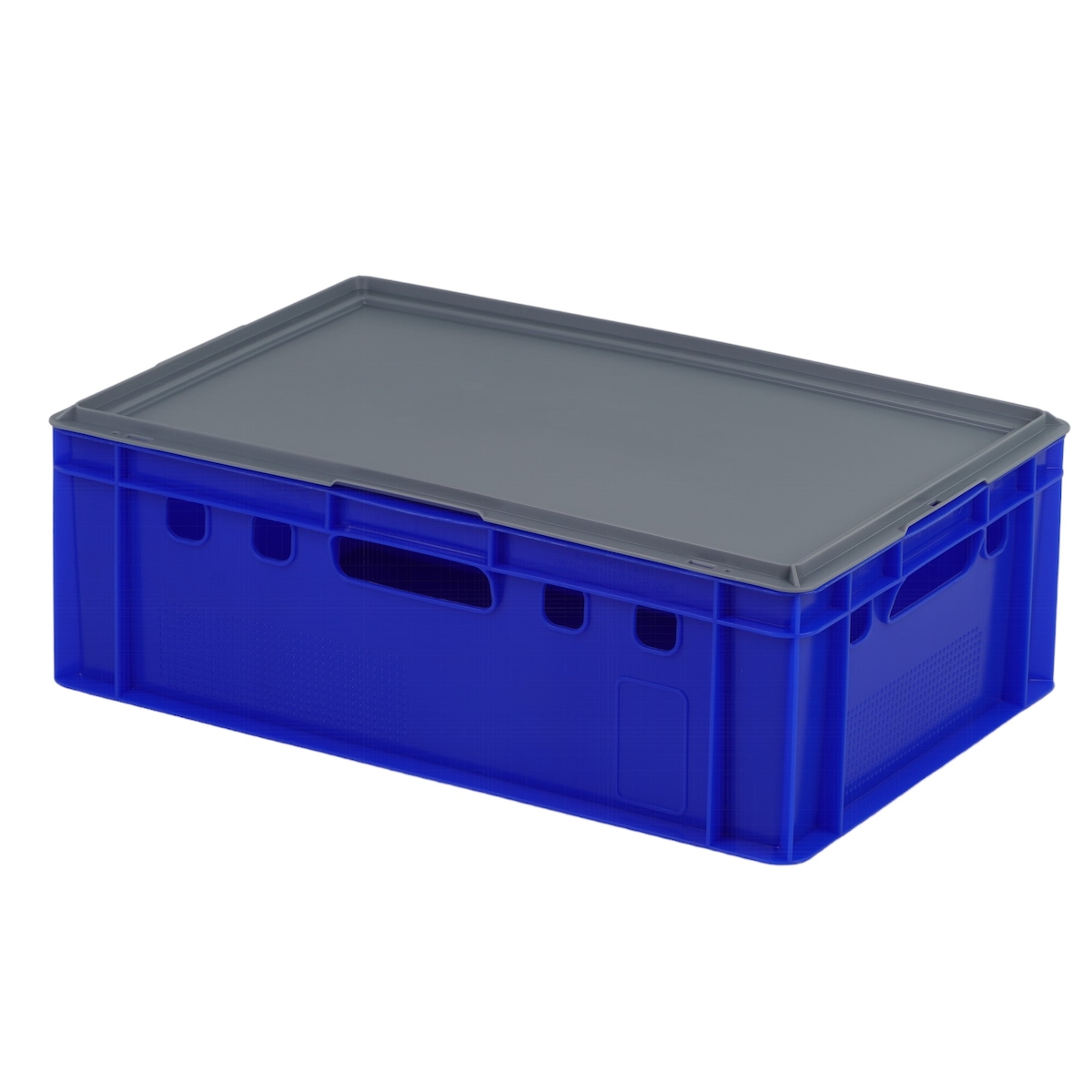 E2 Kiste (600 x 400 x 200mm) mit grauem Deckel Fleischkiste Lagerkiste Metzgerkiste in Blau