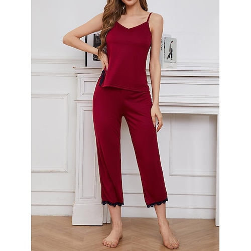 pigiama da donna set colore puro comfort casa quotidiano letto traspirante cinturino top pantaloni estate casa abiti