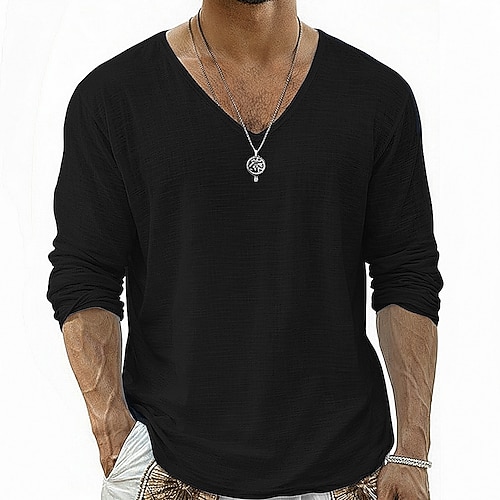 Da uomo Maglietta Camicia a Maniche Lunghe Maglietta in lino Manica Lunga Scollo a V Estate Primavera Primavera Estate Tinta unica Semplice Quotidiano Casual Stile da Strada Puro All'aperto