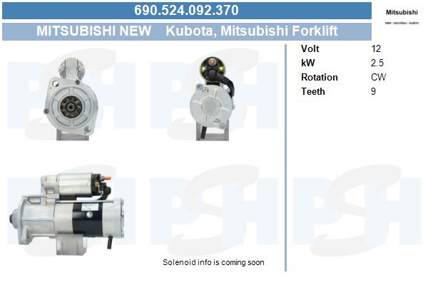 BV PSH Starter 690.524.092.370 Universal 12V für MITSUBISHI VW M008T70974 M8T71871 M008T70975