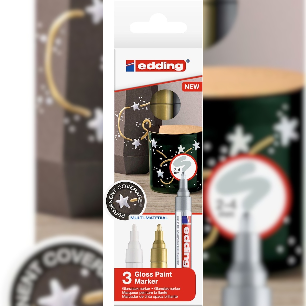 edding Glanzlack-Marker 750 2-4mm weiß, gold, silber VE=14x3 Stück