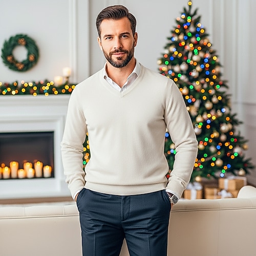 Per uomo Felpa Maglione di lana Maglione A Coste Maglia Corto Lavorato a maglia Tinta unica Scollo a V Tenere al Caldo Moderno Contemporaneo Natale Lavoro Abbigliamento Autunno Inverno Blu Cammello