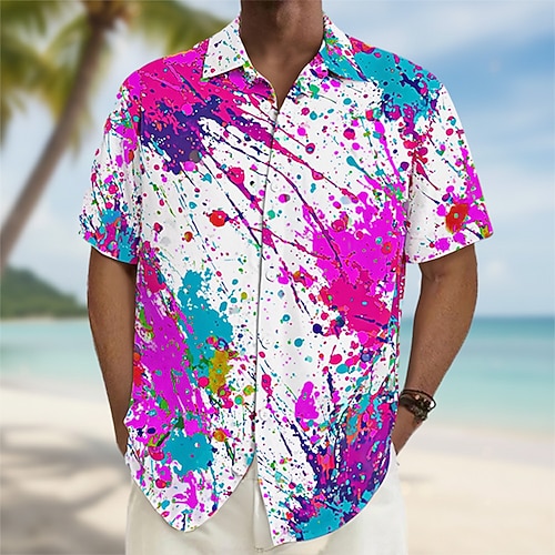 Per uomo Geometrico Inchiostro splash Arte astratta Camicia Camicia con Bottoni Manica Corta Moda Casual Quotidiano Abbigliamento casual alla moda Vacanza Estate Primavera Collo ripiegato Stampa 3D