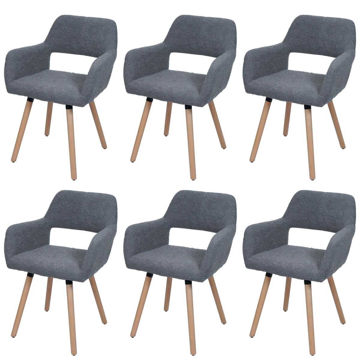 Mendler 6er-Set Esszimmerstuhl HWC-A50 II, Stuhl Küchenstuhl Polsterstuhl, Holz Stoff/Textil Bouclé (450g/m²) FSC® ~ dunkelgrau
