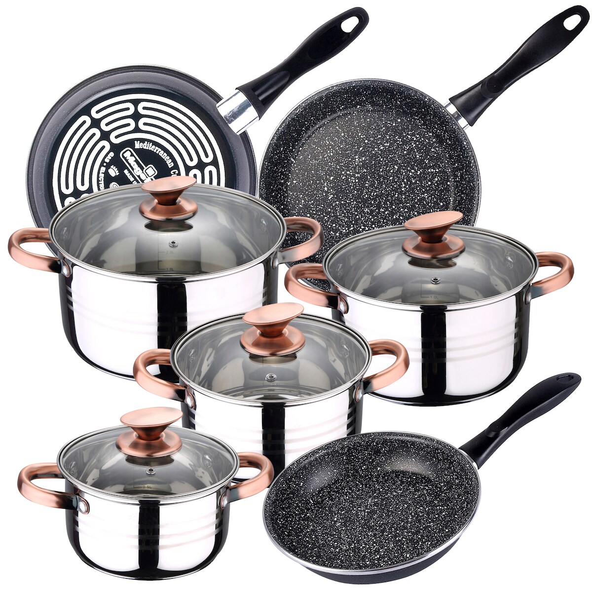 San Ignacio - Nona 16/18/20/24 cm Edelstahl-Kochgeschirrset, geeignet für Induktion mit 18/20/24 cm Pfannenset K2 Gransasso