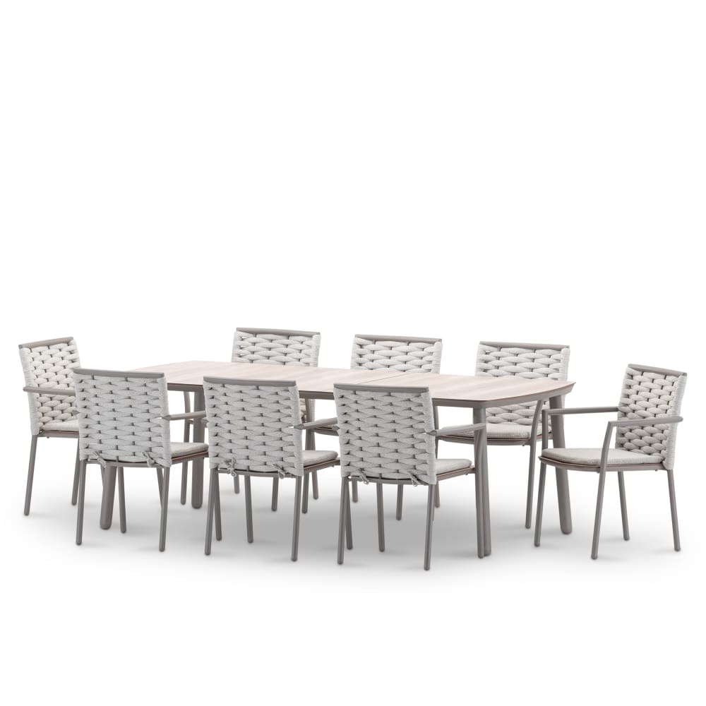 Set da pranzo da giardino taupé e simil legno 8 posti