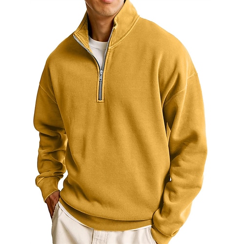 Per uomo Felpa con cappuccio Maglia Maglione Felpa con zip corta Blu denim Nero Giallo Verde chiaro Rosa Colletto Mao Mezza zip Semplice Cerniera Sport Outdoor Casuale Quotidiano Streetwear Cool