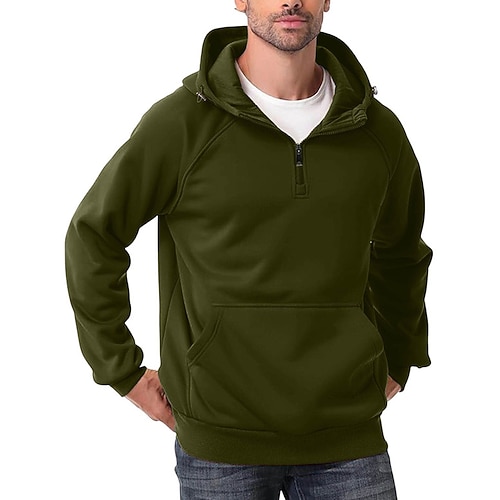 Per uomo Felpa con cappuccio Maglione Felpa con cappuccio e zip corta Rosso bordeaux Nero Verde militare Blu marino Cachi Con Cappuccio Semplice Tasca Sport Outdoor Casuale Quotidiano Streetwear