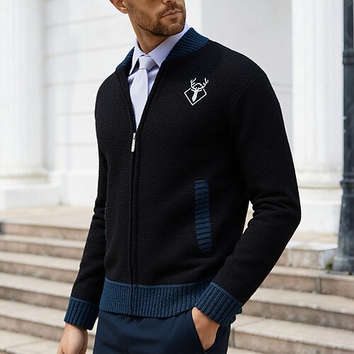 Per uomo Felpa Cardigan Maglione con Zip A Coste Maglia Top Regolari Lavorato a maglia Semplice Scollo a V Vacanza Moda Formale Casuale Abbigliamento Autunno Inverno Nero Blu marino M L XL