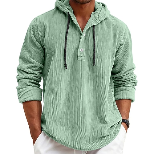 Per uomo Felpa con cappuccio Velluto a coste Maglione Felpa con cappuccio e zip corta Aalbicocca Rosso bordeaux Nero Bianco Blu marino Con Cappuccio Semplice Tasca a marsupio Testurizzato Casuale