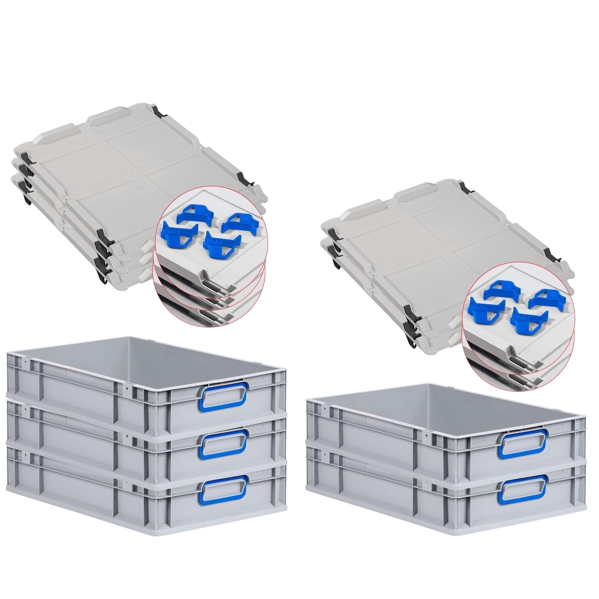 PROREGAL SparSet 5x Eurobox NextGen Color mit Auflagedeckel & Verschlüsse, HxBxT 12x40x60cm, 23L, Grau, Griffe blau zu, Eurobehälter, Box