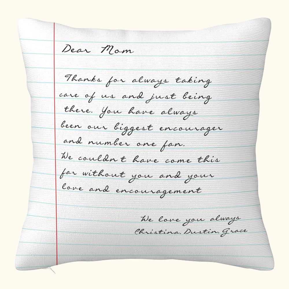 Grazie personalizzato per esserti sempre preso cura di me con la scrittura a mano della lettera d'amore, copertina del cuscino per la festa della mamm