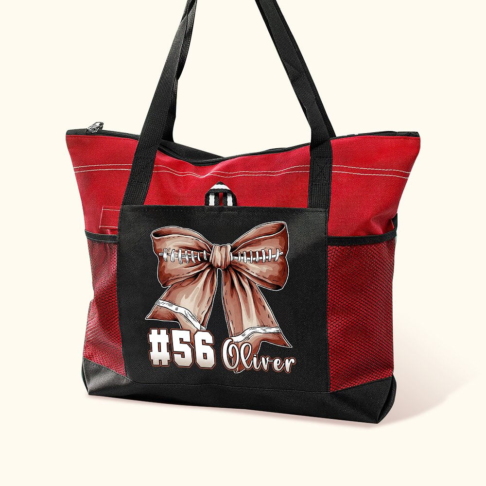 Personalizzato Football Bow Zippered Tote Bag con nome e numero Accessori per il giorno della partita Regalo di compleanno per le donne amanti del calcio