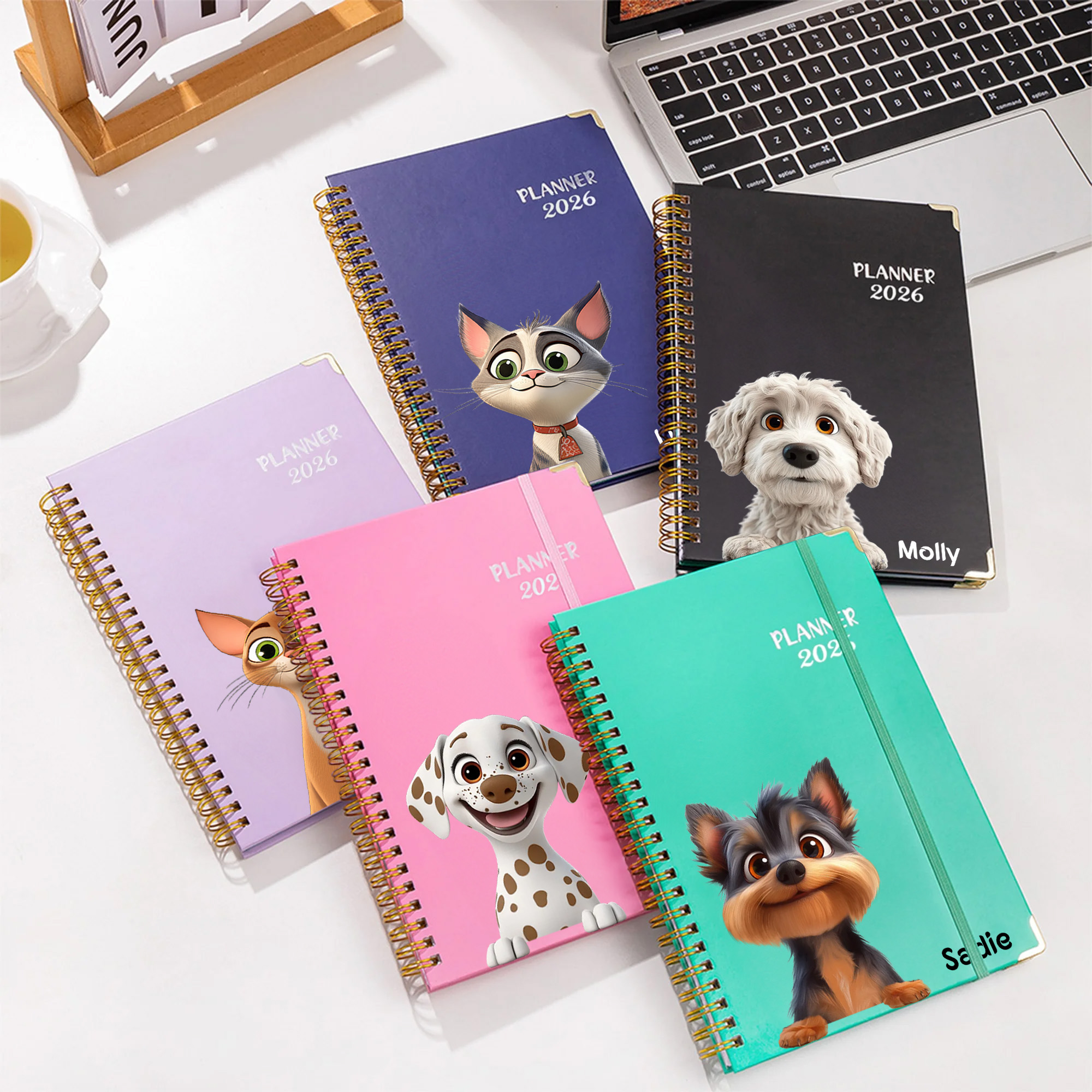 Personalizzato Multiple 3D Pet Characters 2026 Planner Spiral A5 Notebook con nome e Weekly Monthly Planner Birthday Gift per gli amici amanti degli animali domestici