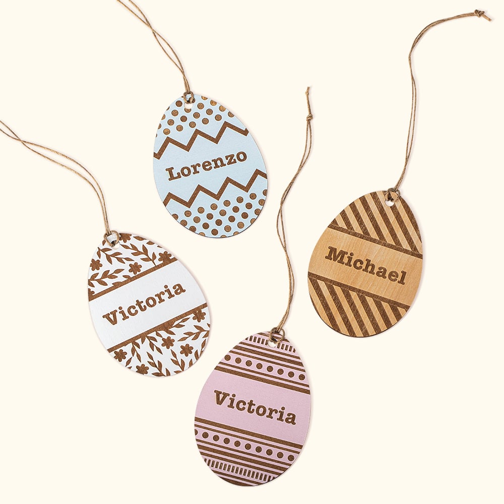 Cestino di Pasqua a forma di uovo personalizzato Etichette in legno Ornamento per la casa con nome inciso Regalo di Pasqua per bambini