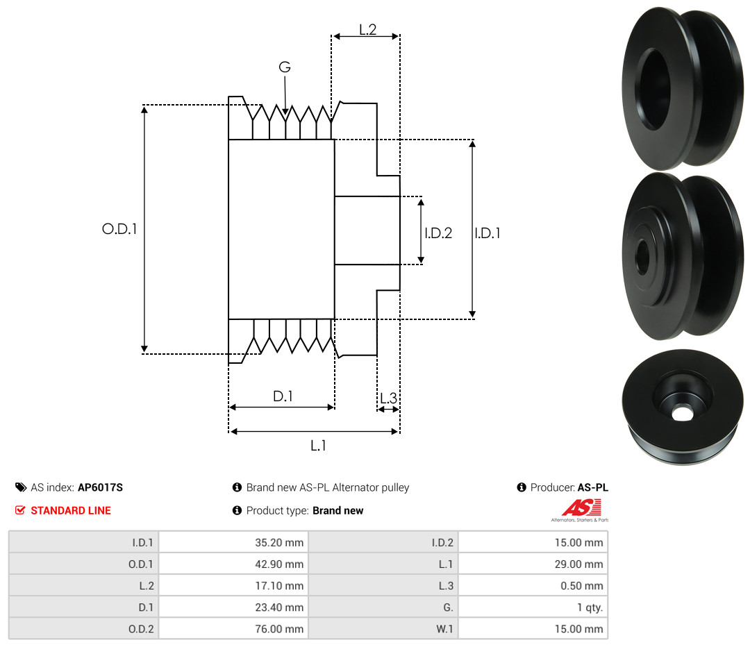 AS-PL Riemenscheibe, Generator AP6017S Universal